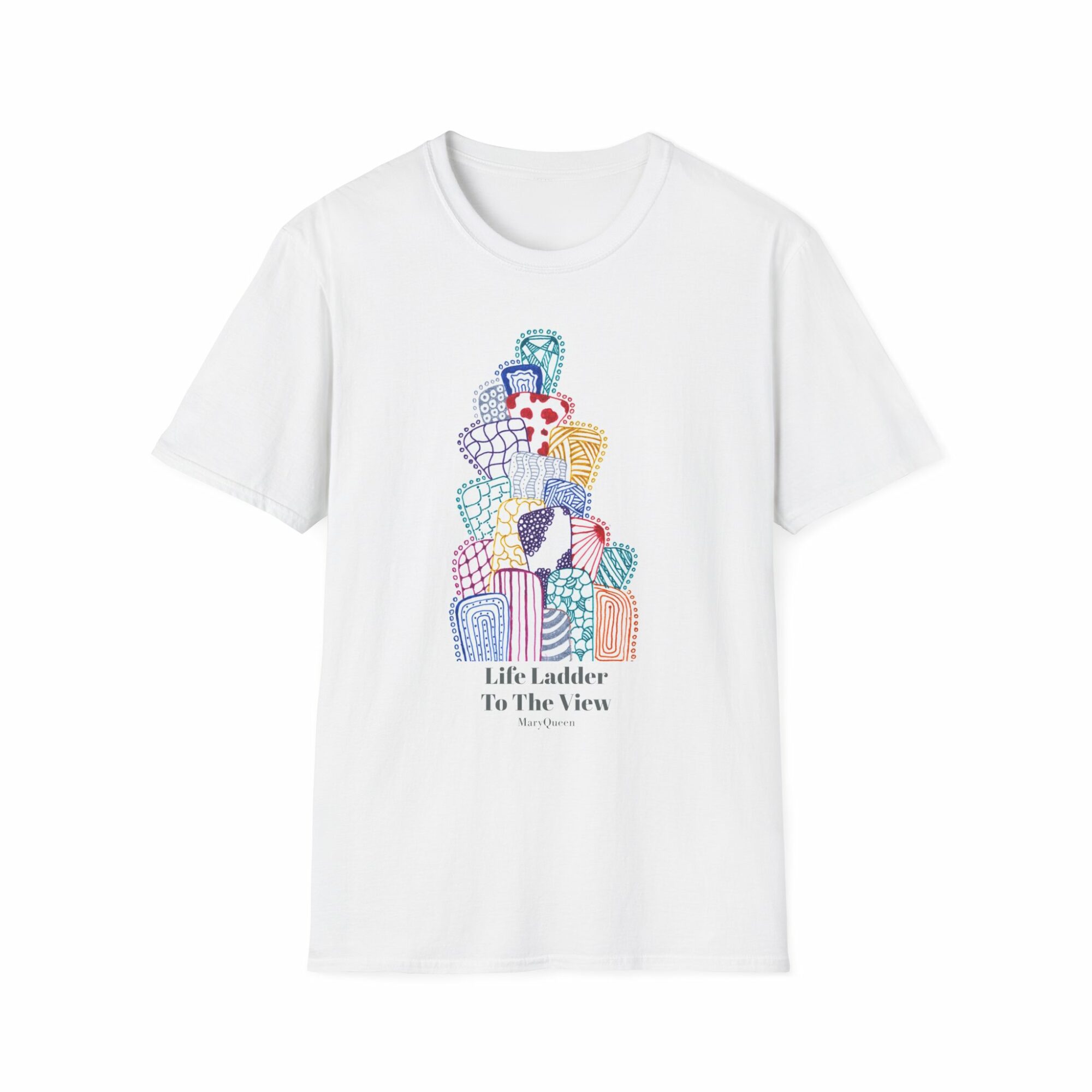 Life Ladder To The View, Unisex Softstyle T-Shirt – MaryQueen Original [Hand-Painted Design]. Made with 100% ring-spun cotton, this lightweight fabric feels like a bliss to wear all year round. The classic fit with the crew neckline delivers a clean, versatile style that can match any occasion. Relevant to adults, this t-shirt is perfect for casual wear and can be a unique addition to any wardrobe. Ideal for gifting during birthdays, holidays, and special occasions.